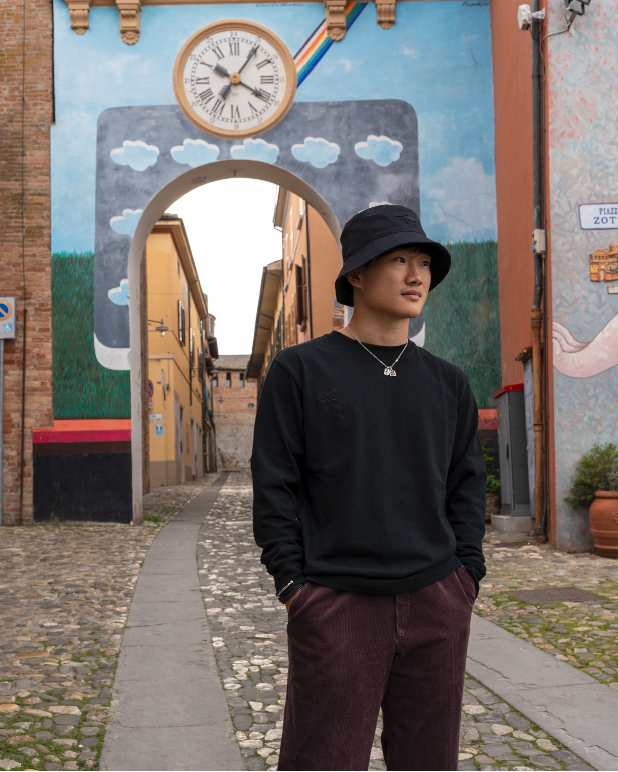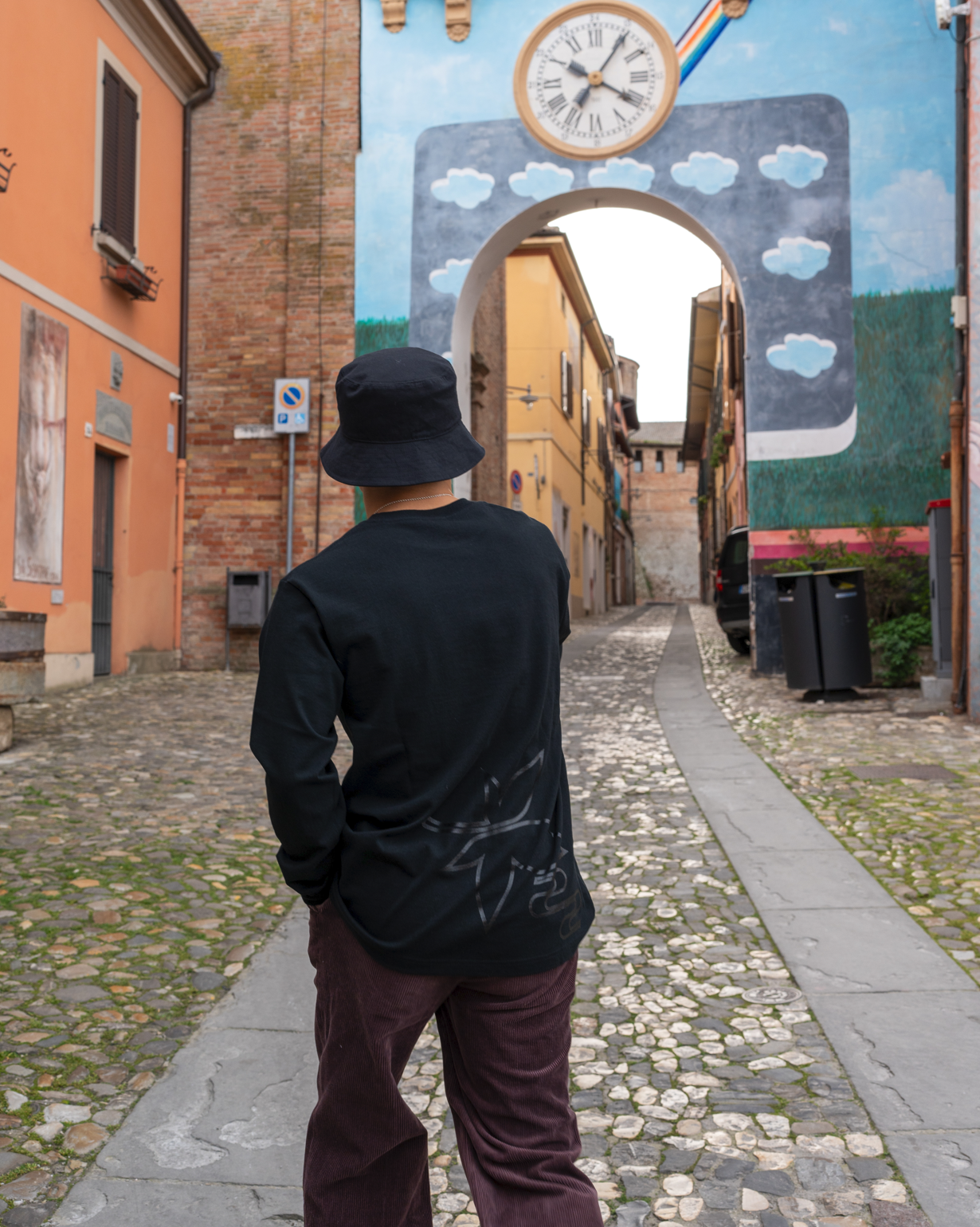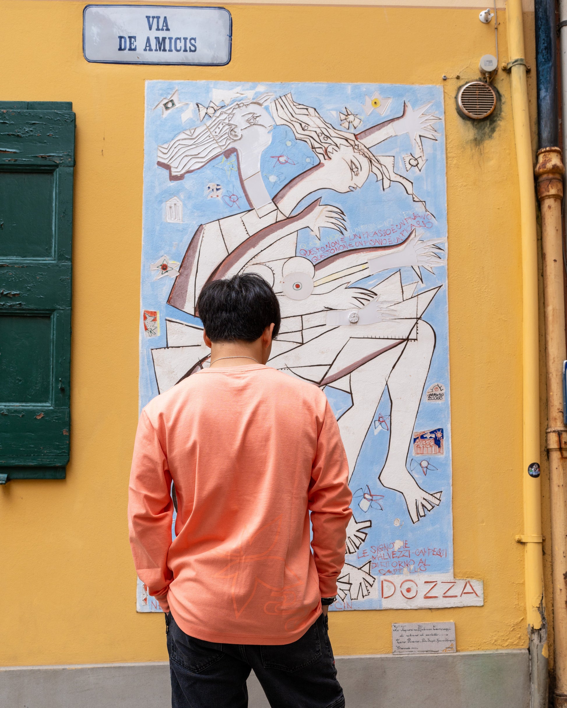 バックの大胆な紅葉とナンバーのプリントも同色の配色にしたことで、よりストリートシックなデザインに。