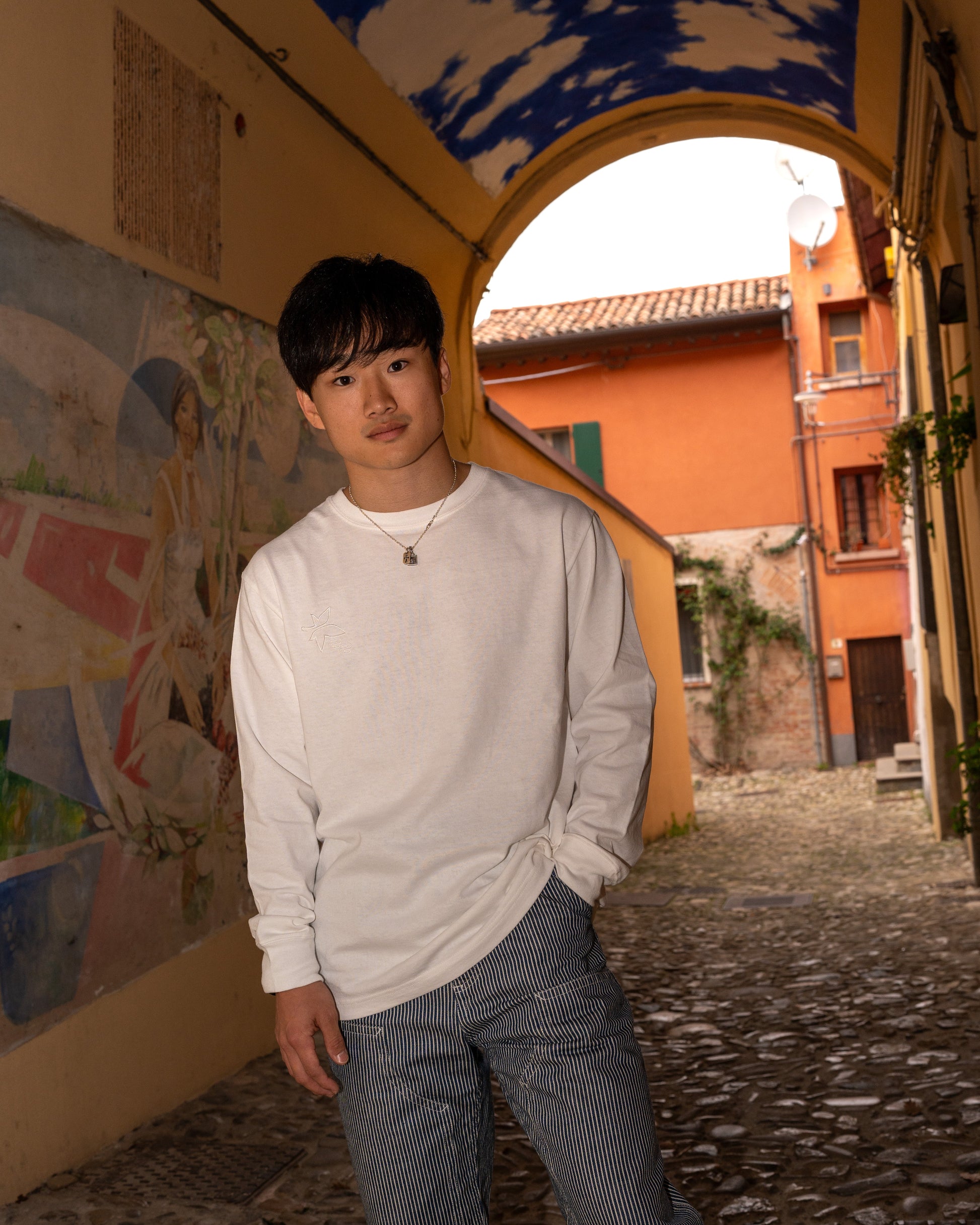 胸元と左袖に、トレードマークの紅葉とカーナンバー22の刺繍をあしらい、あえて配色を抑えた日本製の同色刺繍が、スタイリッシュなカジュアルさを演出。